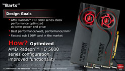 ATI Radeon HD 5800シリーズの後継は,Bartsのほか,2010年第4四半期中の市場投入が予告されている同「Cayman」(ケイマン)も予定されているが,Barts(=Radeon HD 6800)は,AMDが「スイートスポット」と呼ぶ,150〜250ドルの価格帯を狙う製品となる。