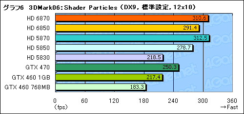 HD 6850はHD 5850とほぼ同じスコアにまとまっており,GTX 465 768MBどころかGTX 460 1GBより高いスコアを示している。