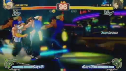 あとユンとヤンのコマンド投げの性能差がちょっとスゴイ。ユンのほうが発生早くてリーチも長くて。