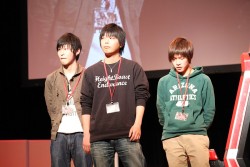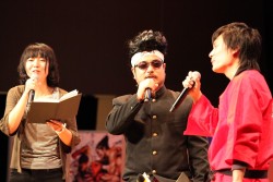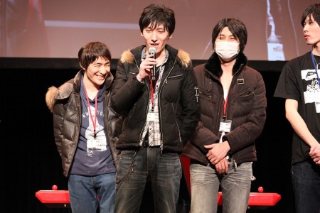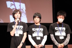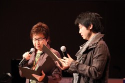 ![]() 海外出張を終え,空港から駆けつけた小野氏。もはや恒例ともいえる原田氏との掛け合いが会場の笑いを誘う。なお大会の幕間に行われた,同作のスペシャルステージの模様は「こちら」の記事を参照してほしい |