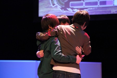 会場の注目を集めたこの対戦では,まさかの先鋒としてウメハラ選手(リュウ)が出場。この作戦が功を奏したか,ギリギリの勝負を制しマッドキャッツチームが3タテで勝利を収めた。