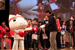 ![]() 「ばいくりまんだ」左からEXマメハラ選手 / MDR選手 / ガチくん選手 |