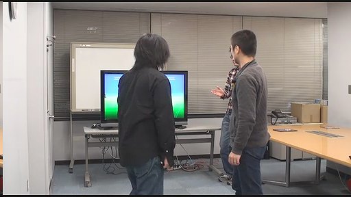余談だが,今回タッグレースを同行した編集者(おっさん)とプレイするハメになり,さらにはその模様をムービーで録画されてしまった。ドッキング中は実際にプレイヤー同士が両手を合わせるので,おっさん二人が手を合わせるという,お世辞にも爽やかとはいえない絵柄で,ゲーム画面もほぼ映っていない状態だが,2人協力プレイがどんな感じになるのかの参考になる……かもしれないので,一応掲載しておこう。
