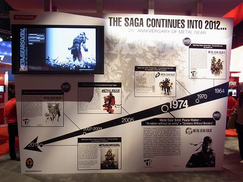 メタルギアシリーズは,2012年で誕生から25周年を迎える。KONAMIブースには,これまでのシリーズの年表が展示されていた