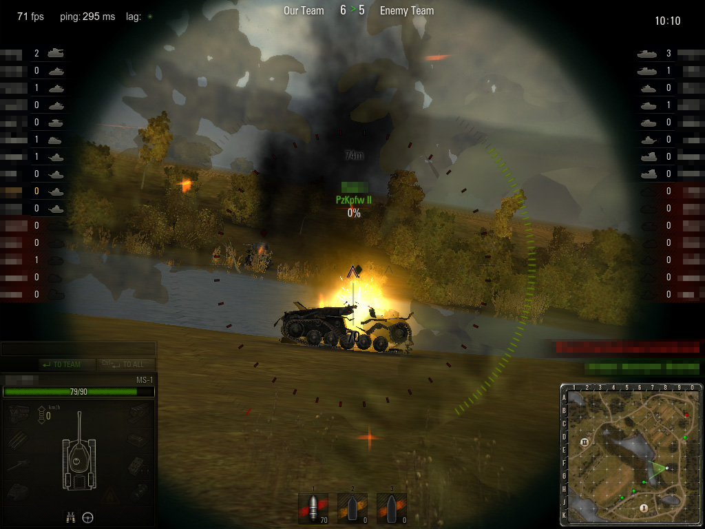 World of Tanksを簡単に説明すると,(今のところ)最大30名のプレイヤーがネット上にある戦場に集合して2つのチームに分かれ,戦車に乗って戦うというMMOG(大人数参加型オンラインゲーム)だ。正式サービスが始まったロシアでは,Free-to-Playスタイルのビジネスモデルが採用されており,誰でも無料で参加が可能になっている。言うまでもなく,収益は戦車やアップグレードパーツなどのアイテムを買ってもらうことによって挙げるわけだ。