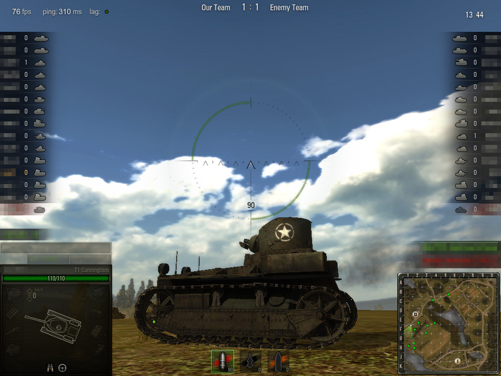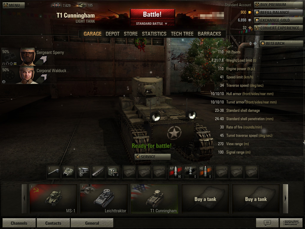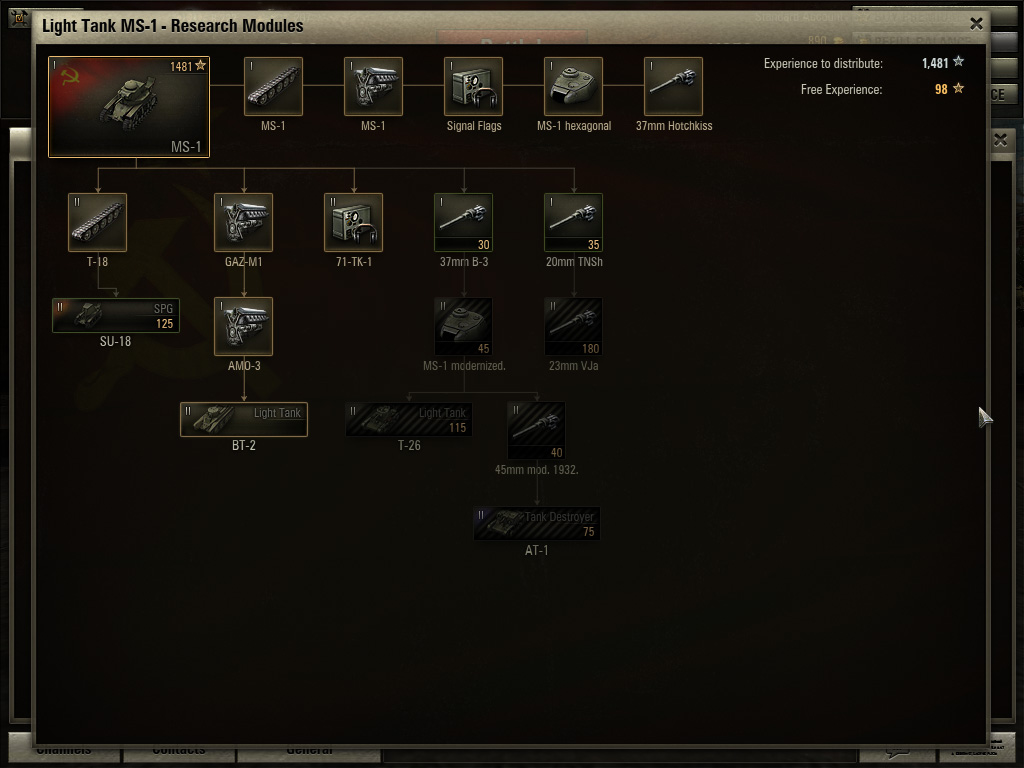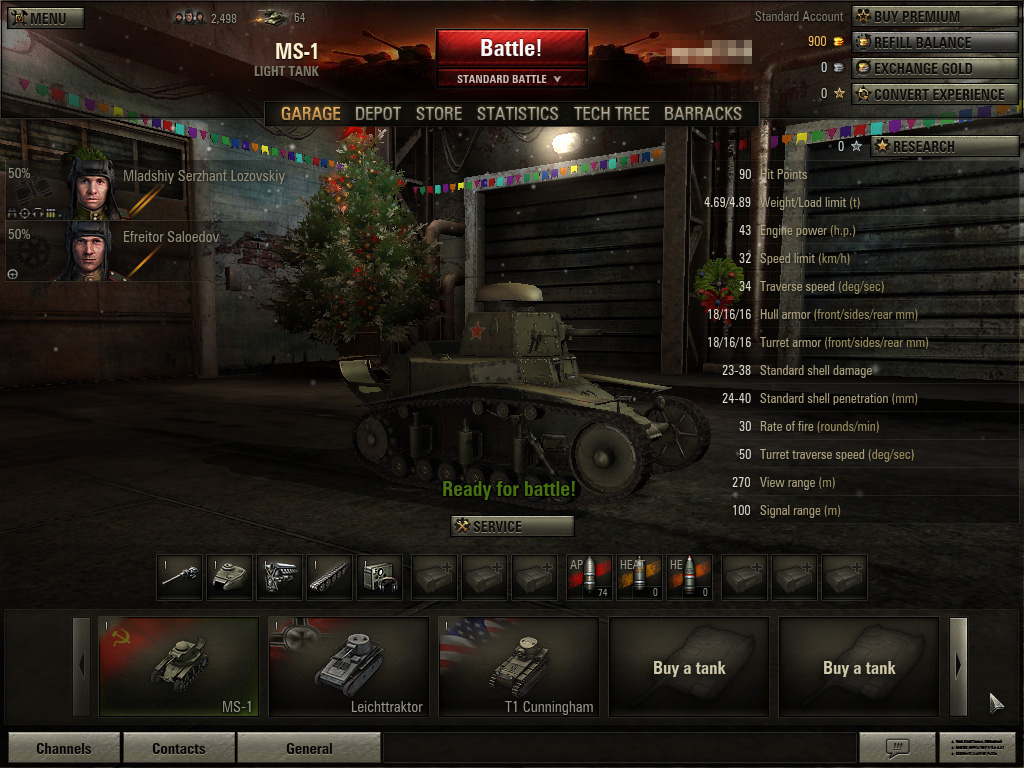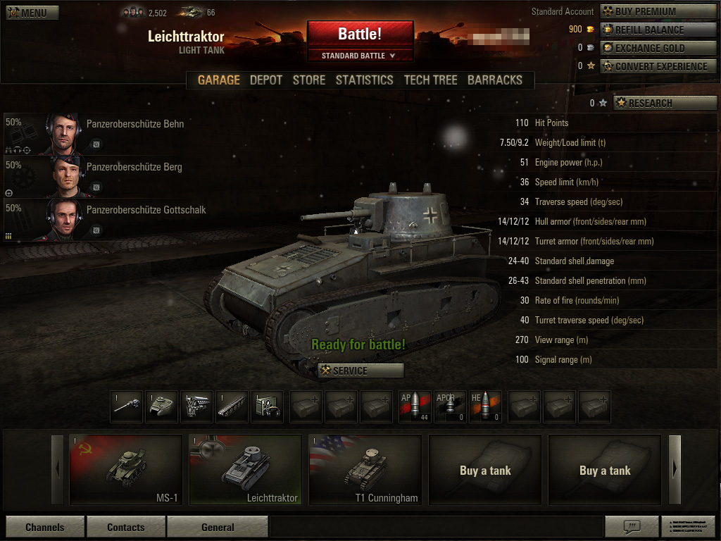 勢力は,ソ連,ドイツ,そしてアメリカの3つ。最初に使える戦車は,ソ連が「MS-1」,ドイツが「Leichttraktor」,そしてアメリカが「T1 Cunningham」の3両で,いずれも第一次世界大戦終了前後の戦車黎明期に試験的に作られたオモチャのような戦車で,戦車と呼べるのかどうかも怪しいシロモノだ。とはいえ,いきなりティーガーとかJS-3とかは無理なので,まずはこれで始めなくてはならない。