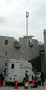 西館裏にて混雑対応のためのSOFTBANKのアンテナカーを発見。Twitterさまさまといったところだろうか