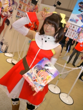 「メモリーズオフ ゆびきりの記憶」といったタイトルのグッズを販売。前回の冬コミと比べると若干小ぶりなブース展開ながら,人だかりは絶えない様子だった。とくにコンパニオンさんのコスプレのレベルが高くて,人気は抜群だった。