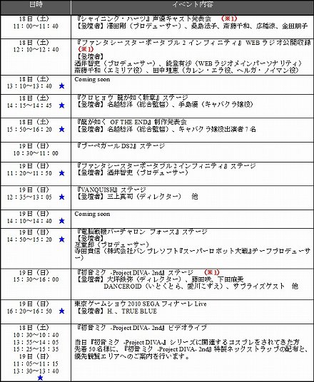 セガ,東京ゲームショウ2010で開催するステージイベントを公開。特設サイトではUSTREAMを使った配信も
