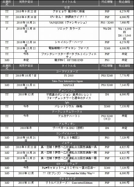 セガは,9月16日から9月19日まで(一般公開日は18,19日)幕張メッセで開催される東京ゲームショウ2010(TGS 2010)で行うステージイベントの情報を公開した。