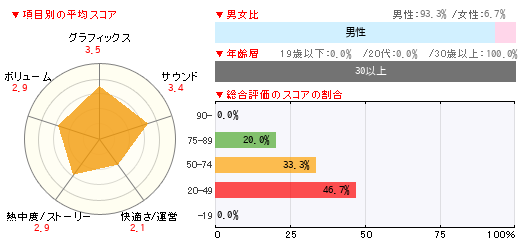 グラフィックス サウンド 快適さ/運営 熱中度/ストーリー ボリューム 5 3 4 4 3 -