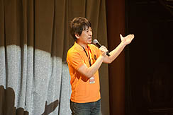 かくして,“アニメ化”という重大発表があったライブもつつがなく終了……と思いきや,最後の最後に登場したのがアイドルマスター2の総合プロデューサーを務める,バンダイナムコゲームスの坂上陽三氏だ。坂上氏は会場に集まったファンに向かい,いろいろとご心配をかけて申し訳ないとしたうえで,アイドルマスター2が完成したことを発表した。同氏によれば,アイドルマスター2は,かなり「骨太」のゲームになっているとのこと。アイドルで骨太というのもちょっと面白いが,その出来映えにはそれなりの手応えを感じているようだった。