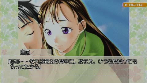 ムービーの冒頭で“海を見たことがない”と語る「加奈」。そのあとシーンが海に変わり,兄が妹をおんぶしたまま,お互いに昔を懐かしみながら笑顔で話し合う様子が収められている。