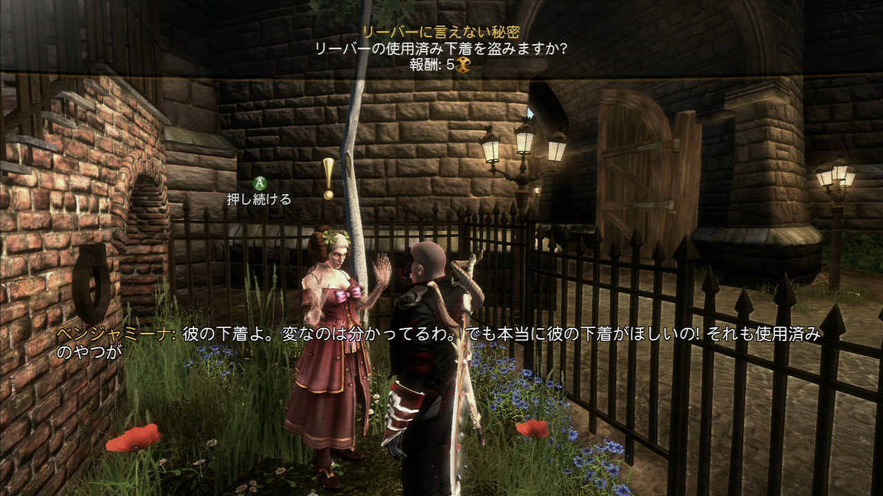 で,発売されてから約3日でクリアしたんですが,やはり尖ったゲームでしたねぇ。ストーリー序盤は,独裁政治で民衆を苦しめる王(主人公の兄)を打倒するため,仲間集めに奔走するという,RPGとしては至極真当な内容になっているのですが,サブクエストで下着泥棒を依頼されたり,テーブルトークRPGの世界に転送され,そこで冒険をするはめになったりと,相変わらず独特のセンスが光っています。