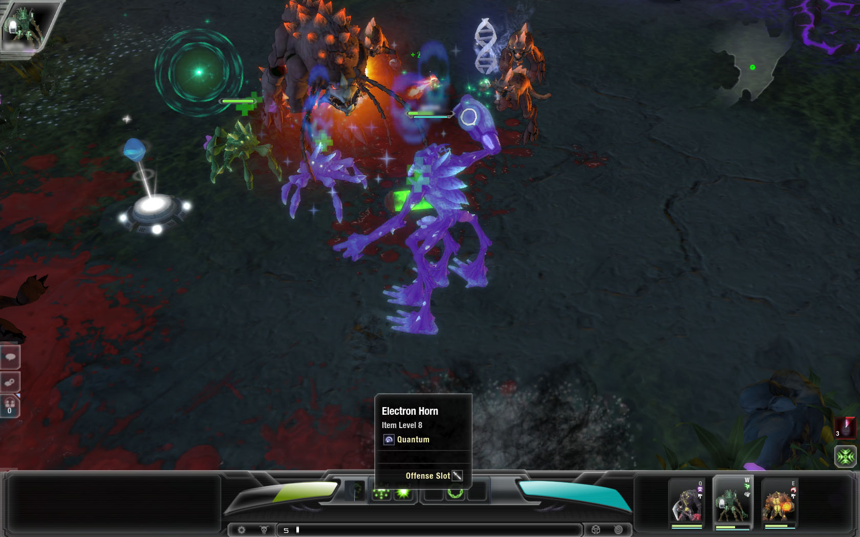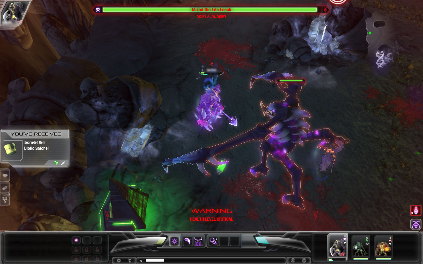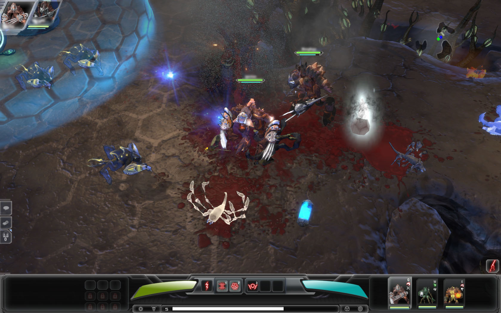 プレイヤーが操作するのは上記のようにHeroという生命体なのだが,これが名前とは裏腹に,まさにクリーチャーといったグロテスクな外見をしている。攻撃方法としては,爪で引き裂いたり,斧で切り刻んだり,銃で攻撃したりなどの基本的なもののほかに,隕石を降らしたり体力を回復させる木を生やしたりといった,さまざまな特殊スキルも持っており,レベルアップによってそのスキルが増えていく。