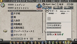 スキルの全体数は(プレイ範囲では)まだ把握できていないが,少なくとも100種類以上はありそうだ。一人のユニットにセットできるスキル数をある程度増やすことはできるが,スキルの種類は多彩なため。どんなに上限が増えても足りるということはない。敵の構成や地形に応じて,随時セッティングを調整していくことになるだろう。
