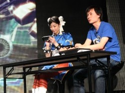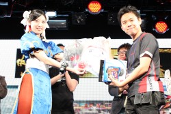 ![]() PS3とPS Vitaで同時に対戦できる「クロスリンク」機能を使ったデモンストレーション。綾野Pとミス春麗の対決は,タッチするだけで簡単に技が出せるカジュアルモードを使いこなしたミス春麗の勝利 |