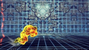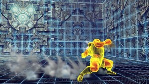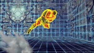 身を翻すようにその場で一回転してから突進攻撃を行う必殺技。身を翻している間は打撃に対して無敵状態になるため,相手の攻撃を回避しながら攻撃を行える。また空中の相手にヒットさせると,追撃可能の壁バウンドを誘発するのも見逃せないポイント。レバーでのタメが必要ない突進技なので,相手の意表を突くように使おう。なおこの技には,ボタンを押しっぱなしにした時間によって段階的に攻撃力が上昇する効果もある。![]() |