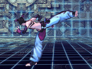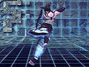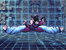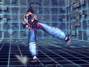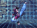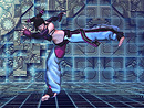 脚を振り上げる蹴り技をくり出したあとに,前方へ衝撃波を飛ばす必殺技。衝撃波はコマンド入力後ボタンをホールドすることで発射を一時停止でき,その場合はボタンを離したときに発射される。衝撃波は発射動作の隙が小さく,ホールドしたまま自由に動き回れるので,けん制,固めとさまざまな局面で活用できる。また,衝撃波はボタンによって発射角度が異なり,弱版が地を這う軌道,中版が前方,強版が斜め上方向へと飛ぶ。EX版は通常版とは特性が変化し,ボタンを押し続けても衝撃波の発射を止められない。そのかわり衝撃波が2ヒットとなる。またボタン同時押しの組み合わせで衝撃波の発射方向が変わり,「弱K中K同時押し」で弱版,「中K強K同時押し」で中版,「弱K強K同時押し」で強版と同じ軌道で衝撃波が飛ぶ。![]() 風破刃(蹴り上げ) |