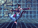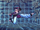 回転しながら前方に移動し,蹴りで相手を攻撃する。弱版は攻撃回数が少ない代わりに,ガードされても隙が小さく気軽に使える。中版,強版は攻撃ヒット後に相手を浮かせることができ,ステージ中央ではスーパーアーツの回旋断界落で,相手を画面端に追い詰めた状況では,各種通常技で追撃が可能となる。とくに中版は攻撃発生が早く,弱攻撃からでも連続ヒットするため,コンボに組み込みやすいのが魅力だ。EX版は攻撃発生後まで無敵が持続し,割り込みに使いやすい。さらにヒット後は相手を垂直方向へ浮かせる性能があり,ステージ中央でも空中コンボで追撃できる。![]() 穿風車 |