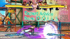これらのけん制と奇襲を嫌がった相手は,ジャンプで間合いを詰めようとするので,そこをしゃがみ強Pで迎撃するのがジュリの狙い。対空からの空中コンボで大ダメージを与えてやろう。