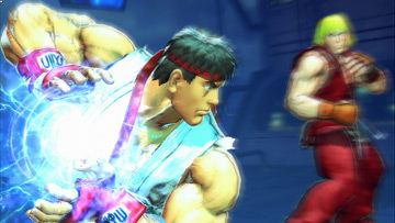 ![]() 画面端ではEX波動拳を使ったラッシュが強力。ガードさせた後にリュウ側が大幅に有利な状況となり,スペシャルゲージが続く限り攻め続けられる |