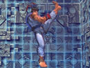 前方に踏み込みながら強力な蹴りをくり出す。弱版は攻撃発生が早いが隙が大きく,強版は攻撃発生が遅い代わりに隙が小さいのが特徴。EX版はしゃがみ弱Kから連続ヒットするほど攻撃発生が早く,さらにヒット時は相手を壁バウンドさせる。ここに近距離立ち強Pなどからの空中コンボで追撃し,相手に大ダメージを与えよう。![]() 上段足刀蹴り |