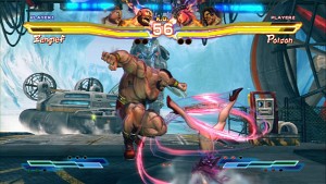 相手への接近に成功したらコマンド投げのチャンス到来だ。投げの一番の狙いどころは,ジャンプ攻撃や近い間合いで近距離立ち弱P,しゃがみ弱Pをガードさせた後。ここからスクリューパイルドライバーとしゃがみ弱Kで相手のガードを揺さぶりにかかろう。しゃがみ弱Kからは,目押しで再度しゃがみ弱Kへつないでヒットを確認,そこから上手くコンボへと持ち込みたいところだ。