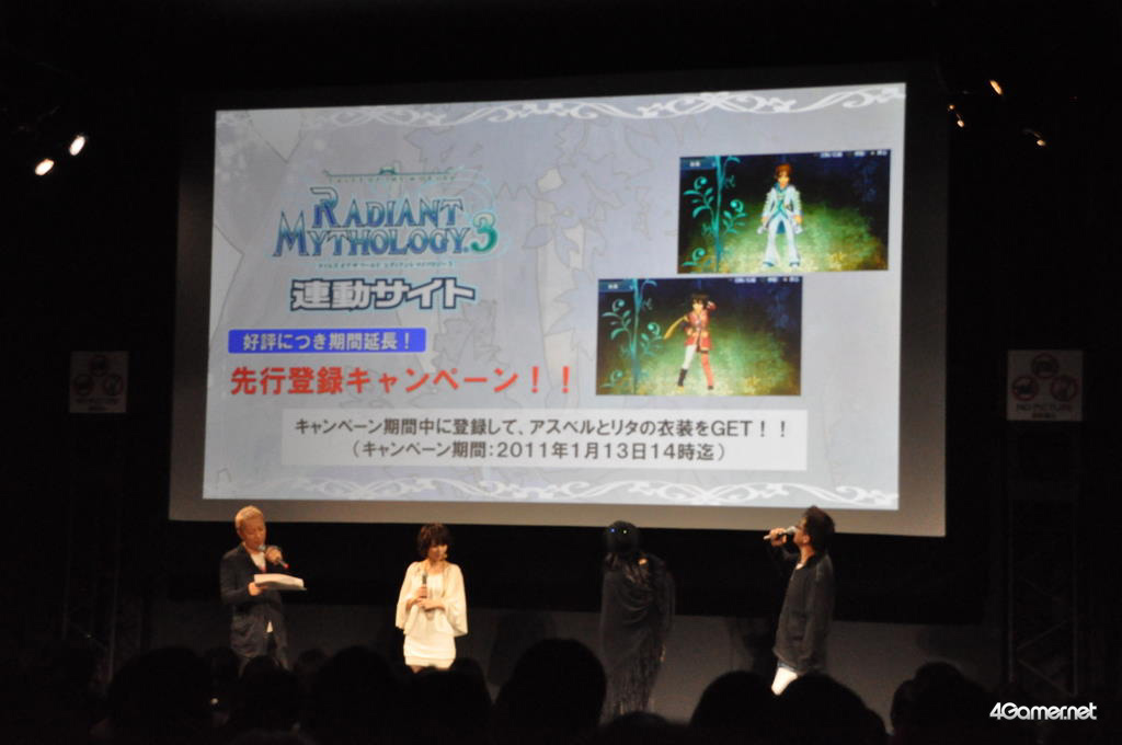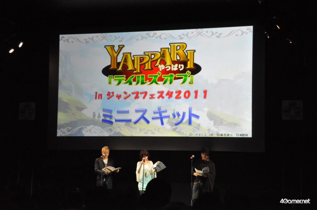 平野 綾さん達によるトークで盛り上がった“やっぱり「テイルズ オブ」in ジャンプフェスタ2011”。「テイルズ オブ ザ ワールド レディアント マイソロジー3」のオープニングも初公開