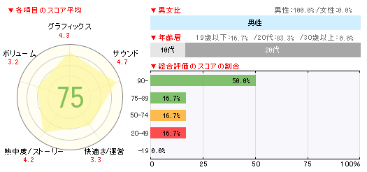 ・ノーダメージ短時間クリアがそんなに偉いか。じっくり戦う事の何が悪いのか。そもそもそんなコンセプトなら低攻撃力で最高レベルまでいけてしまうのはおかしいのではないか。楽しみにしていたゲームだっただけに非常に残念。ゲームシステムとしては優秀なのでアップデートや続編があるのなら無駄な評価やクリア条件なんかを見直してもっといろんなプレイスタイルで遊べるゲームにしてほしい。