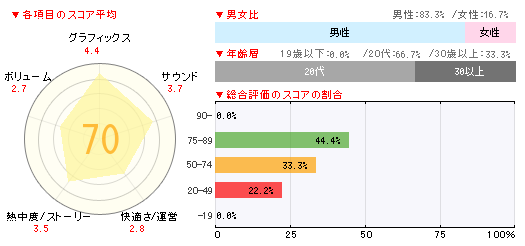 ・このジャンルのゲームは、日本にはまだあまり入ってきておらず、初心者がプレイするにはとても良い。他のゲームが、Wikiを熟読して事前にセオリーを身につけていないと、容赦ない罵倒を浴びせられるので、このお手軽さはとても貴重。またプレイ時間も10分程度とお手軽で、息抜きにちょっとプレイするのにとても良い。細かい点で不満もいろいろあるものの、期待しているゲーム。