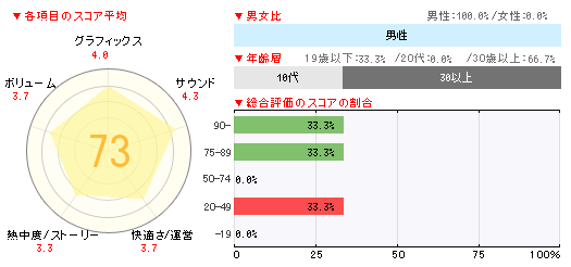 ・ゲームは如何にも子供向けという感じで、ポケモンやドラクエのように、やり込みが有り、かつサクサク進むという感じではない。(ATOS/男性/30代)