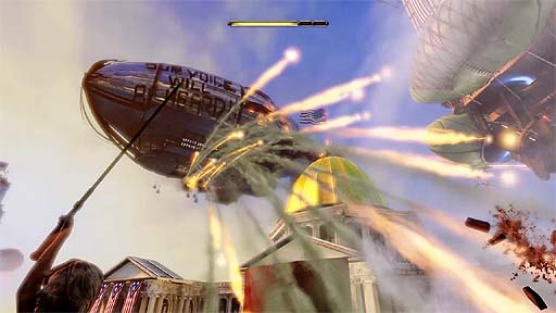 芸術と科学の理想郷として作られたラプチャーが,行きすぎた人体改造技術によって自滅したように,コロンビアもまた,崩壊の危機に瀕している。富裕層によって構成される「ファウンダーズ」と,労働者の組織「ボックス・ポピュライ」が激しく対立しているのだ。そんなわけでブッカー,つまりプレイヤーは強力なSong Birdの追跡をかわしつつ,見境なく襲ってくる過激な連中を倒して,エリザベスと共に地上に戻らなくてはならないのだ。