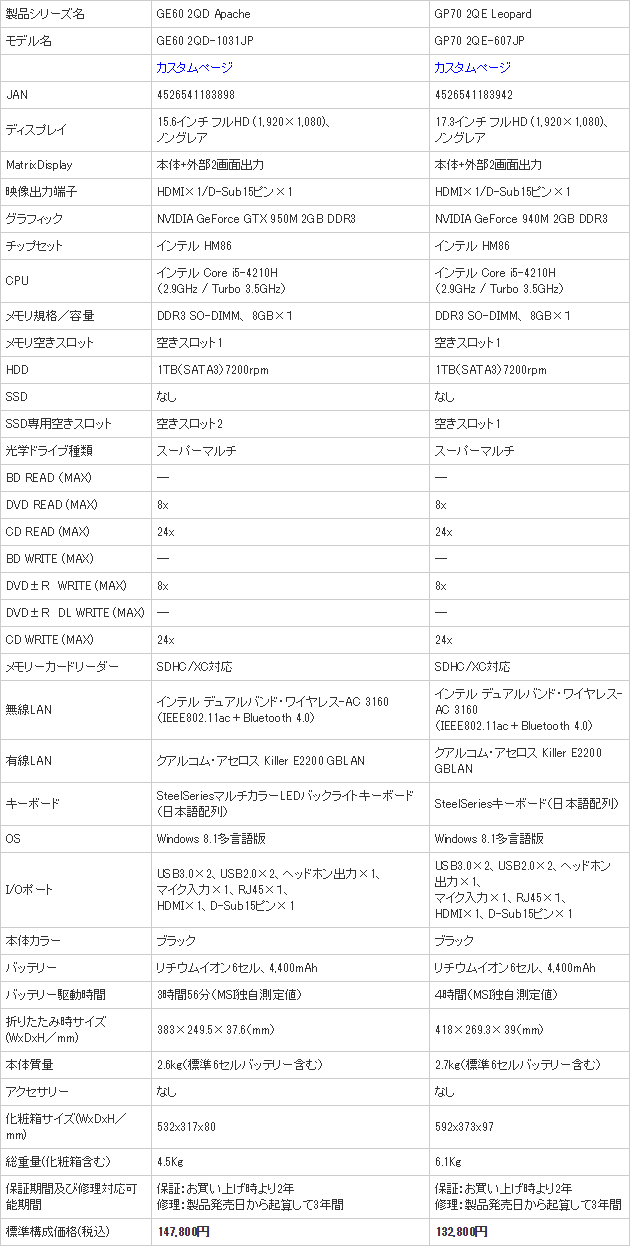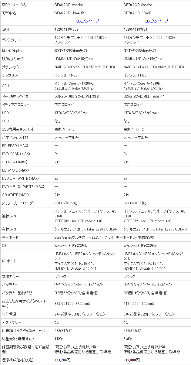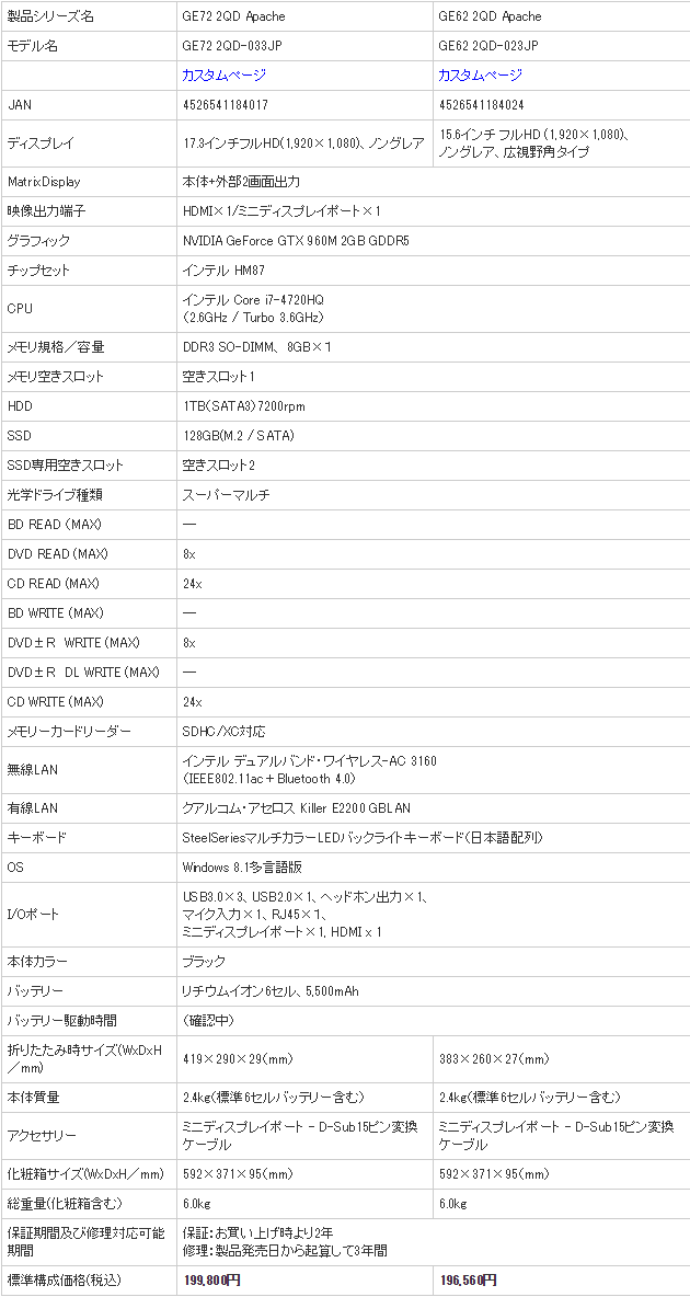 アーク,GTX 960Mなど新GPU搭載のMSI製ゲームノートPCを取り扱い開始