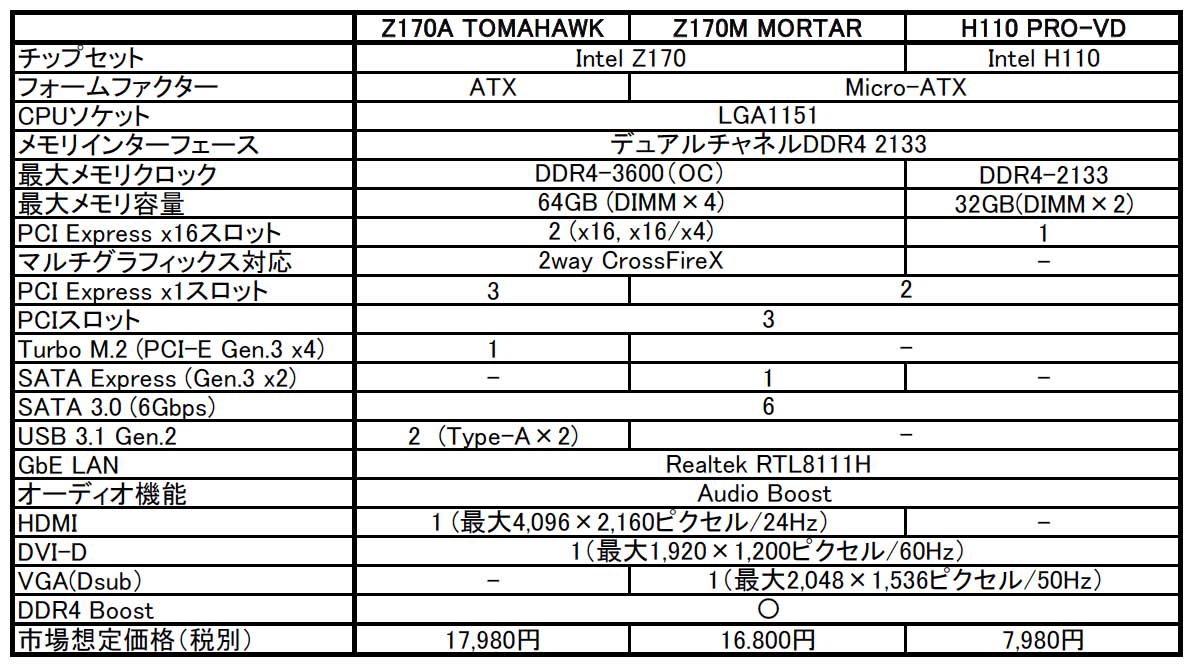 MSI,カジュアルゲーマー向けのZ170マザーボード2製品を発売