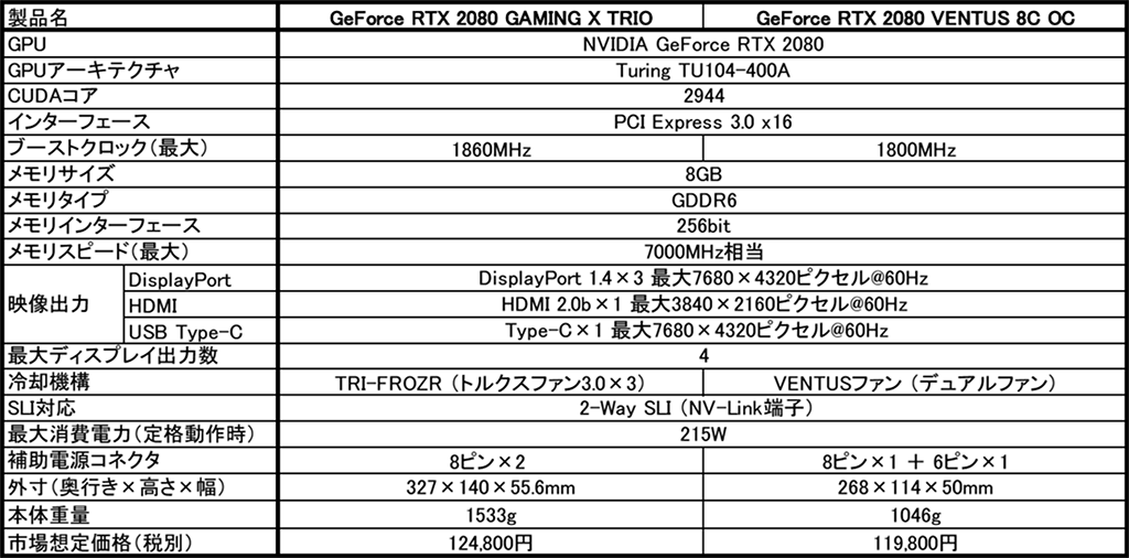 MSIのGeForce RTX 2080搭載カード2製品が登場。価格は約13万円から