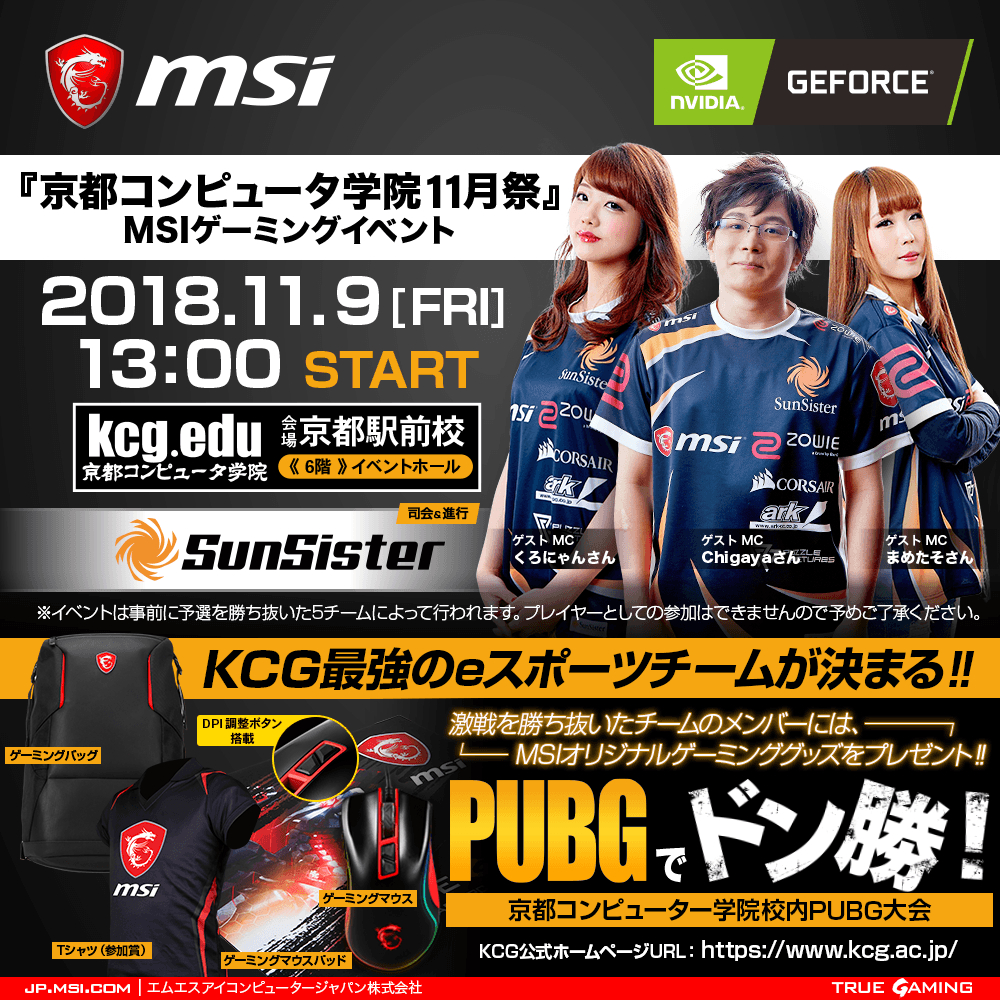 MSI,京都コンピュータ学院の学院祭でゲームノートPCを使った「PUBG」イベントを開催