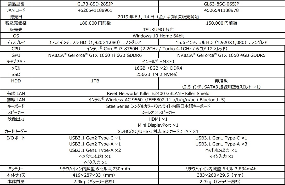 MSI製ゲームノートPCのTSUKUMOオリジナルモデルが発売に。GTX 1650搭載モデルが税込15万円前後