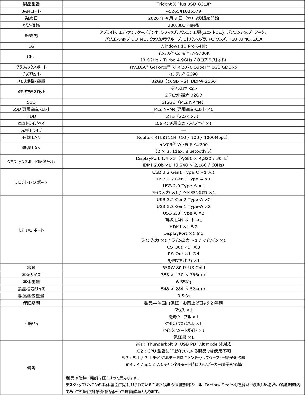 MSI,RTX 2070 SUPER搭載で容積約10リットルの小型ゲームPCを発売