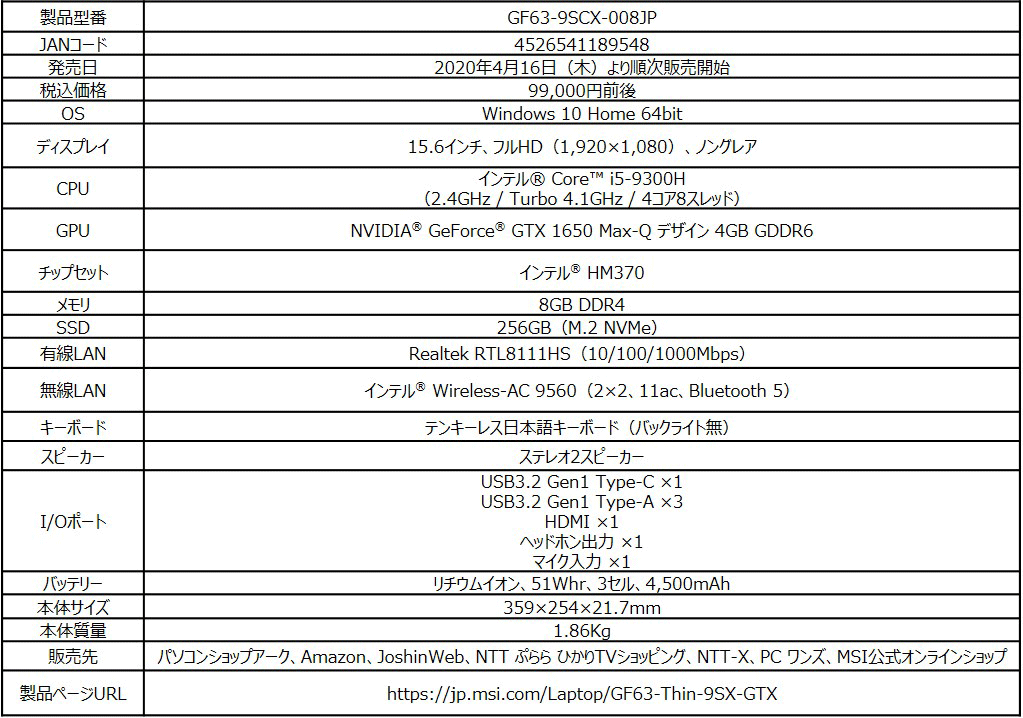 MSI,GTX 1650 Max-Q搭載で税込約10万円の15.6型ノートPCを発売