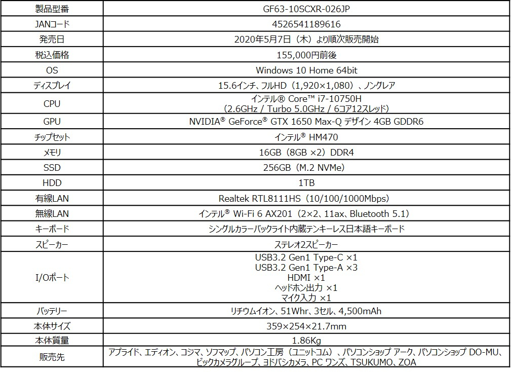 MSI,GTX 1650 Max-Q搭載で税込15万5000円前後のノートPC発売