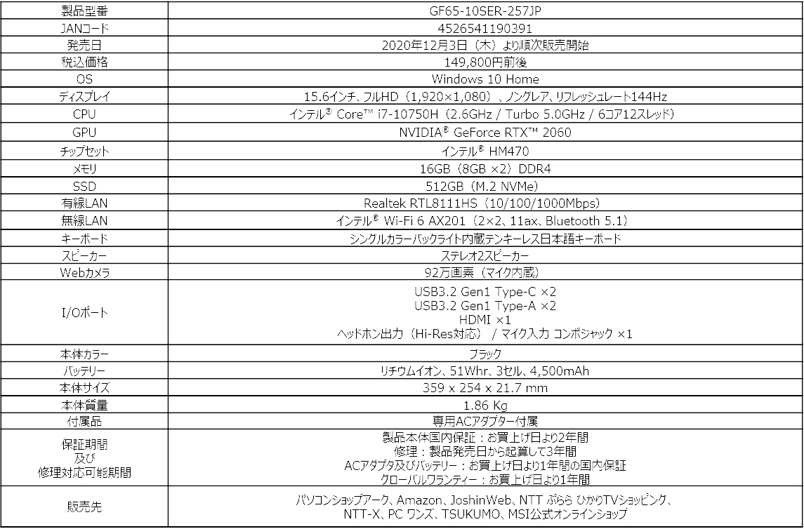 MSI,RTX 2060&144Hz液晶搭載で税込15万円前後のゲームノートPCを発売