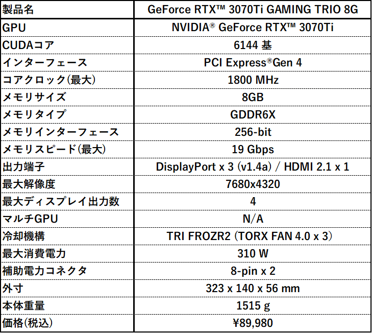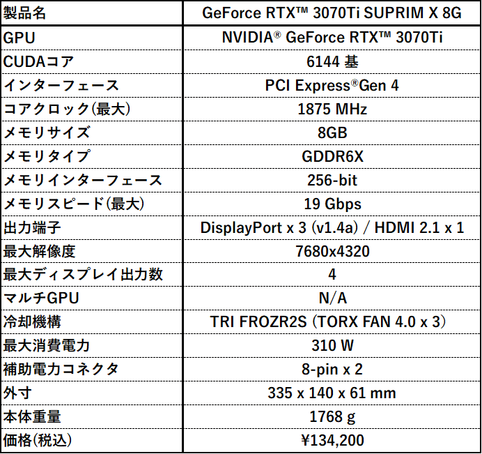 MSI,大型3連ファンクーラー搭載のRTX 3070 Tiカード計3製品を発売