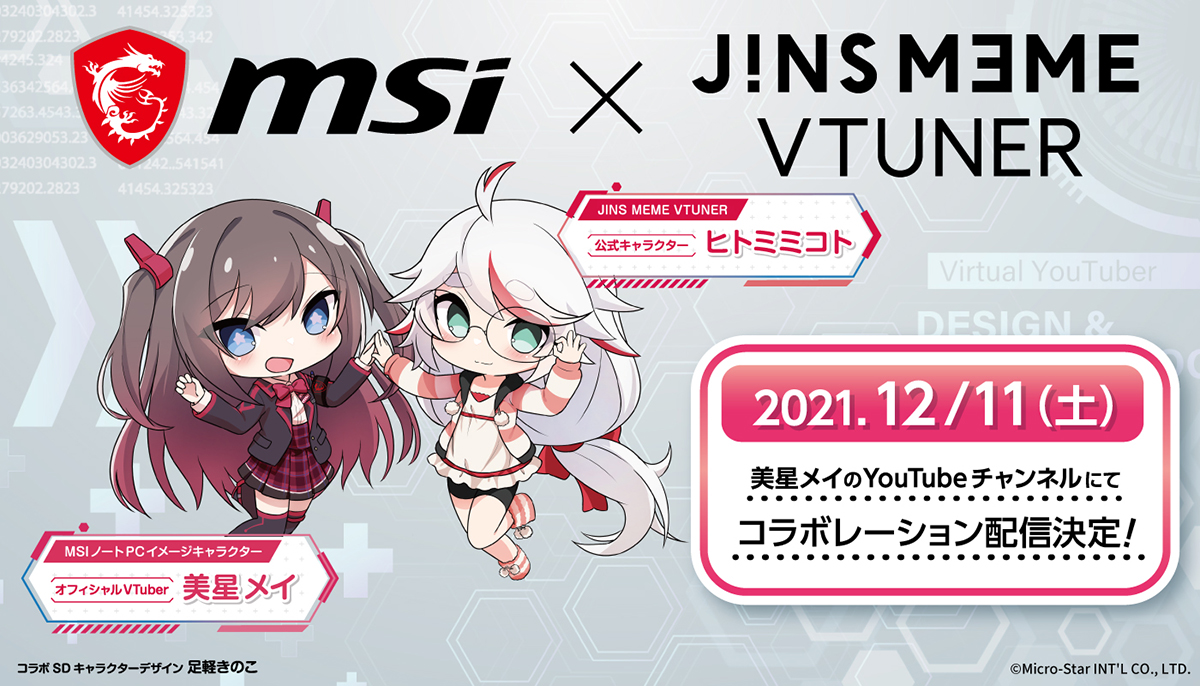 MSI,視線の動きを検知する眼鏡「JINS MEME」とAR合成アプリ「VTUNER」を使ったゲーム実況動画を12月11日に配信