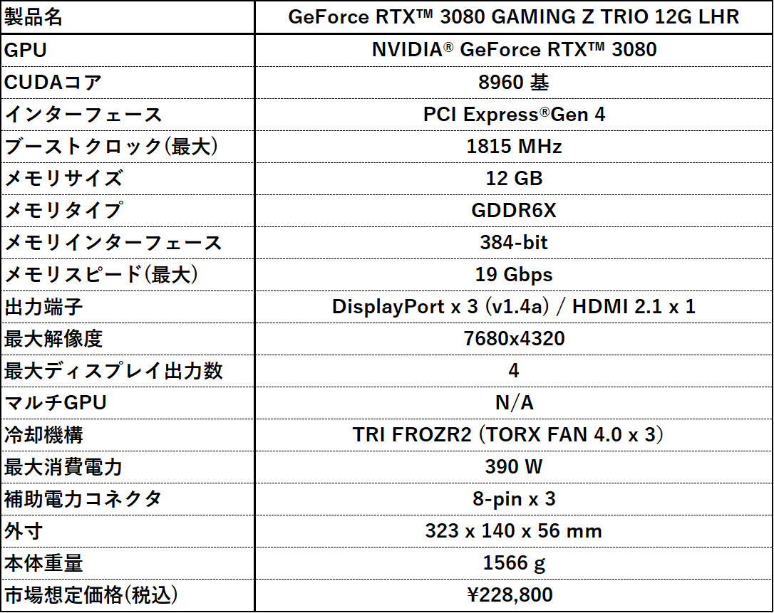 MSI,3連ファンクーラー搭載のメモリ12GB版RTX 3080カードを発売