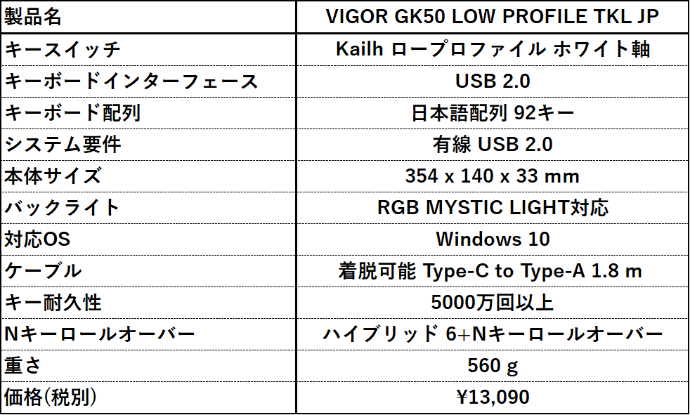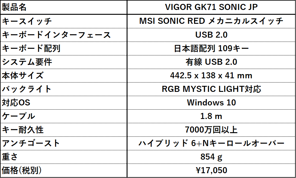 MSI,独自キースイッチ採用の日本語フルキーボードを発売。低背スイッチ採用の小型キーボードも登場