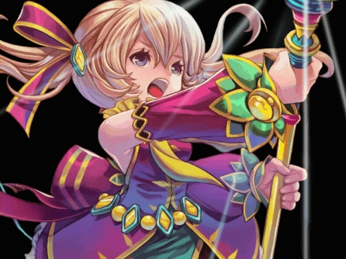 “メイジ”。スタッフやワンドを武器とし,変身後は天使のような姿で,さらに強烈な範囲攻撃を敵に浴びせるという。キャラクターボイスを演じるのは,初音ミク役でおなじみの藤田 咲さん。