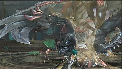 「ディラ・ブレイヴァス」は,メインビジュアルでもその姿が見られるドラゴンタイプのモンスターだ。元々は,重要拠点防衛用の超大型スタティリア(要するに戦闘兵器)だったが,現在は暴走してしまっており,放電や竜巻などを起こしながら各地を襲撃しているという。