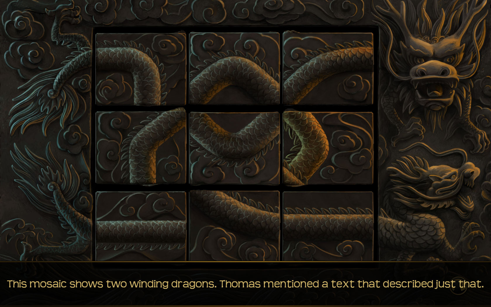 アドベンチャーらしく,壊れたレコード板を元に戻したり,石版を動かして壁の模様を再現したりといったパズル要素があちこちに登場する。もっとも,パズルは総じて難度が低めなので,手強いものを求めている人にはちょっと物足りないかもしれないが,そのぶん,ゲームはサクサクと進む。