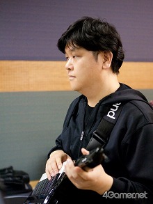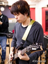 ![]() 寺前 甲氏(ギター) ゲームの曲自体を子どもの頃から聴いていたので,伊藤さんの曲を演奏するというのは変な感じですね(笑)。光栄です。気合いを入れてやります |